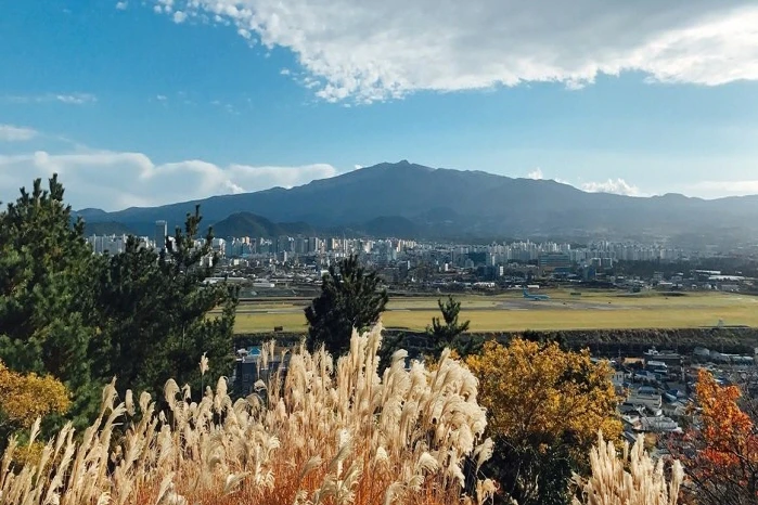 제주 공항 바로 옆의 오름으로 경사가 완만하며 오르기 쉽다. 남사면은 풀밭을 이루면서 듬성 듬성 해송이 있고, 북사면은 삼나무와 낙엽수 등이 어우러져 숲을 이루고 있다. 봉우리는 2개이며, 동쪽 봉우리가 높고 주변에는 국수나무, 팥배나무, 덜꿩나무, 예덕나무 외에 여러 종류의 새우란, 바람꽃 등의 야생식물이 자라고 있다. 오르는 길과 정상에서 제주국제공항에 비행기가 뜨고 내리는 것도 볼수 있는데 바다 전망과 어우러져 꽤나 장관을 이룬다. 자료출처 : 비짓제주(https://www.visitjeju.net/kr) 펜션에서 차량으로 약 8분, 4.7km